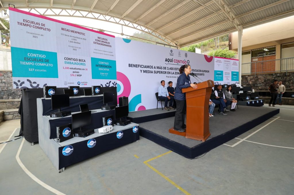 “Este programa concursable nos da la oportunidad de actualizar nuestros centros de cómputo, arreglar a lo mejor los pizarrones o los baños. Hoy reconocemos particularmente, a través de Contigo, Intervención Educativa, a los municipios de Arroyo Seco, Pinal de Amoles, Jalpan de Serra, Peñamiller y Landa de Matamoros, con una inversión de 19.6 millones de pesos”, destacó.