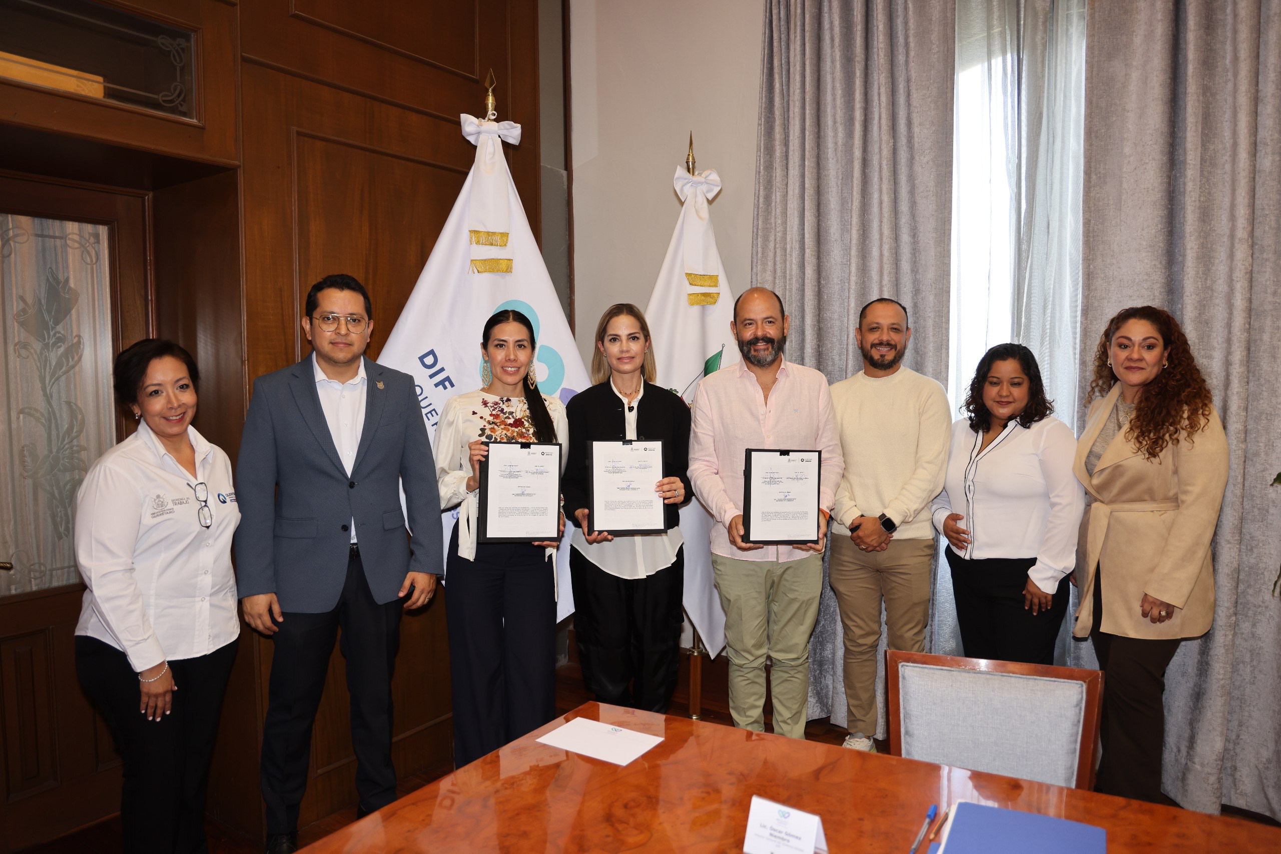 Bajo la premisa de que todos los individuos tienen el derecho de acceder a un trabajo digno y adecuado, la presidenta del Patronato del Sistema Estatal DIF, Car Herrera de Kuri, firmó como testigo de honor un convenio de colaboración con la secretaria del Trabajo, Liliana San Martín Castillo, con el objetivo de trabajar juntas e implementar acciones que impulsen la cultura de la inclusión social y laboral en Querétaro.